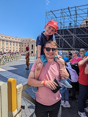 Am Sonntag den 26. Mai dann waren wir alle zu einer Messe auf dem Petersplatz eingeladen. Im Schatten der Kolonaden verfolgten wir die Messe. Am Ende lud uns der Papst zum zweiten Weltkindertag nach Rom ein, der im September 2026 stattfinden wird.