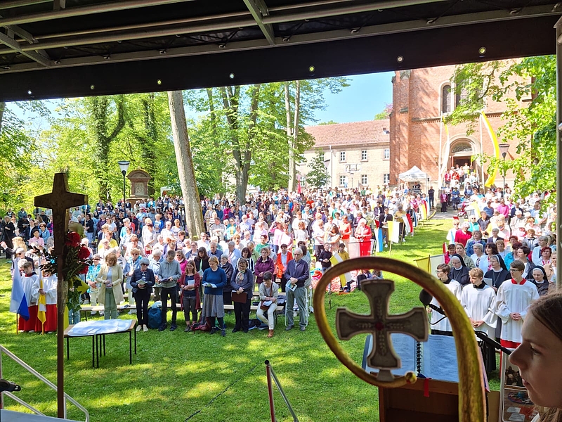 Mehr als 1.000 Pilger:innen zog die diesjährige Frauenwallfahrt am vergangenen Sonntag, 12. Mai, auf den Kerbschen Berg. Sie stand unter dem Thema: "Verwandelt das Böse durch das Gute" (Röm 12,21) . Die Kollekte ist für eine ukrainische Tanzgruppe bestimmt, die beim Katholikentag in Erfurt auftreten wird. Mit dem Geld soll den jungen Tänzer:innen eine kleine Ruhepause von dem Krieg in ihrem Land ermöglicht werden. Ungefähr 2.000€ kamen zusammen.