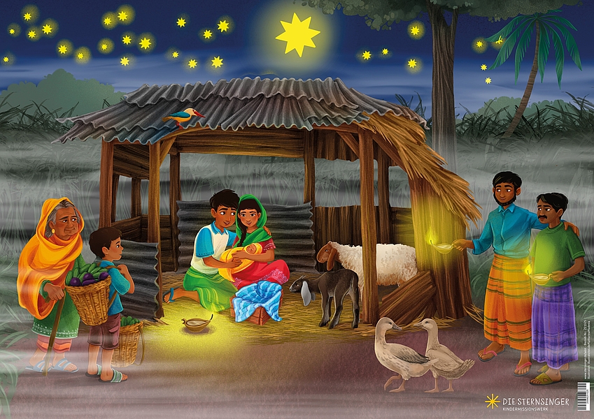 Es gibt einen Bastelbogen mit Spendenkästchen und Krippenlandschaft, ein Begleitheft mit einer Vorlesegeschichte und ein Aktionsplakat bereit. Die Materialien können beim Kindermissionswerk ab sofort kostenfrei bestellt werden (Telefon: 0241446144, Mail: bestellung@sternsinger.de, Onlineshop: shop.sternsinger.de). Eine Arbeitshilfe mit Tipps zum Einsatz der Materialien in Schulen, Kindertagesstätten und Gemeinden gibt es zum Download unter www.sternsinger.de/wmt. Das Beispielland ist diesmal Bangladesch.