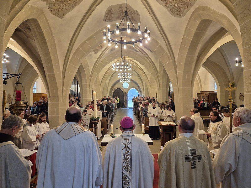 Am heutigen Sonntag (25. Mai) fand die Bittwallfahrt zum Hülfensberg statt. Wegen des Regens wurde der Wallfahrtsgottsgottesdienst mit Bischof Ulrich Neymeyr in der Klosterkirche gefeiert.