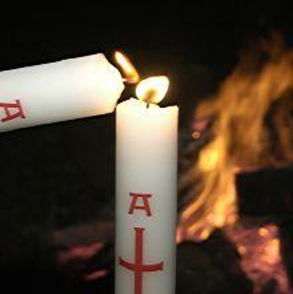 Bei der Lichtfeier wird die brennende Osterkerze in die dunkle Kirche getragen. Sie ist das Zeichen für Christus, der Licht in die Welt gebracht hat.