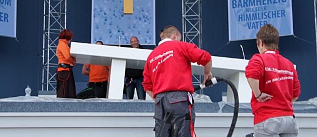 Aufbauarbeiten am Donnerstag. Dann kann der Papst kommen.