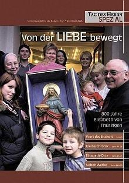Leipzig/Erfurt (BiP). Unter dem Titel "Von der Liebe bewegt" hat die Katholische Wochenzeitung "Tag des Herrn" ein Sonderheft zum 800. Geburtstag der Erfurter Bistumspatronin Elisabeth von Thüringen herausgebracht.