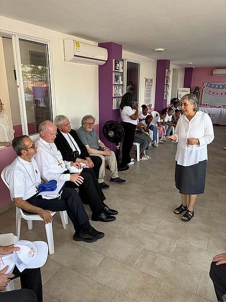 Beeindruckend waren für mich besonders die Hilfsangebote für Frauen, die bisweilen schon mit 5 Jahren prostituiert wurden oder sich später prostituiert haben, um ihre Familien ernähren zu können. Sie wurden in Projekte eingeladen, durch sich durch Pediküre und Herstellung von Textilien eine Lebensgrundlage zu schaffen. Viele Frauen sagten: „Dann mache ich ein Geschäft auf!“ Das neue Geschäft bestand vielleicht in einem kleinen Verkaufstisch oder –laden. Es bot ihnen aber die Möglichkeit der finanziellen Unabhängigkeit und Sicherheit und sogar des Schulbesuchs ihrer Kinder. Beindruckend waren für mich Frauen, die in den Sumpfgebieten von Caratgena einen Hausrat bewirtschaften, der lange Zeit ohne Strom und Wasser zu bewältigen war und durch die Hilfe von ADVENIAT nun sogar eine eigene Toilette bekam. Die Einweihung von Toiletten war für uns Bischöfen wohl eine Besonderheit, denn diese wird nicht einmal im kirchlichen Rituale vorgesehen. Die Freude der Menschen jedoch über diesen neuen Qualitätszuwachs ihrer Wohnungen blieb bei uns nicht ohne Reaktionen, die bei mir auch Tränen auslösten, wenn ich an die Möglichkeiten in unseren eigenen Wohnungen dachte.