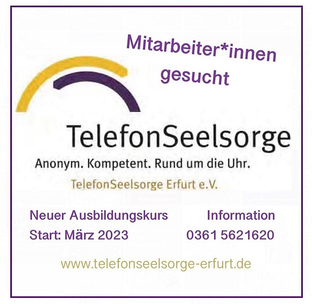 Weitere Informationen erhalten Sie auf unserer Homepage unter www.telefonseelsorge-erfurt.de.