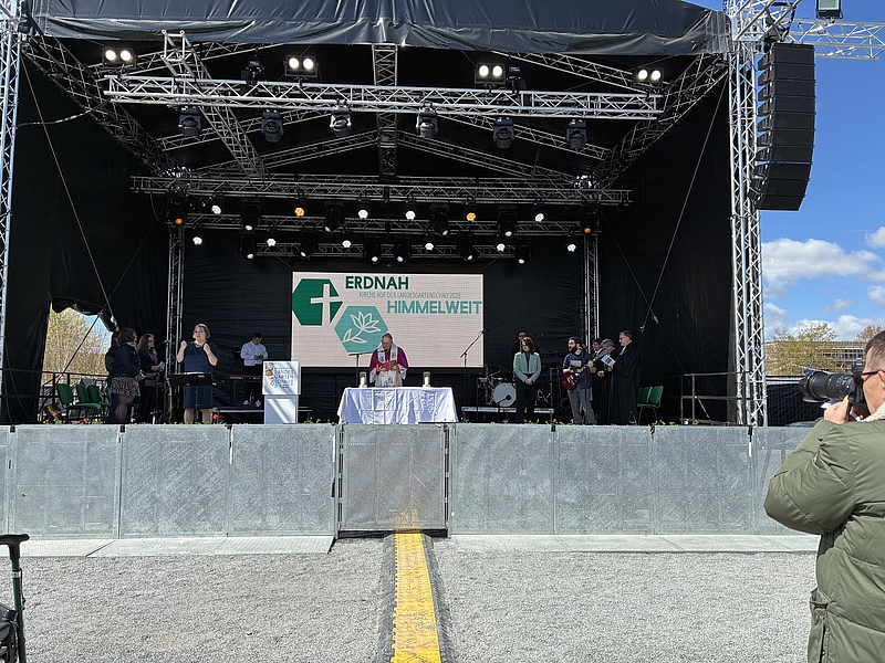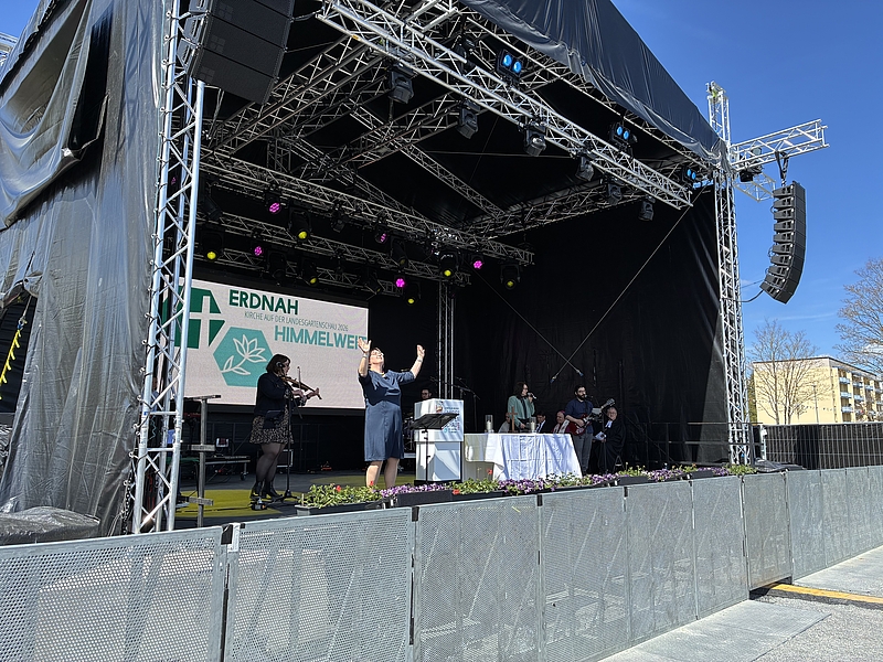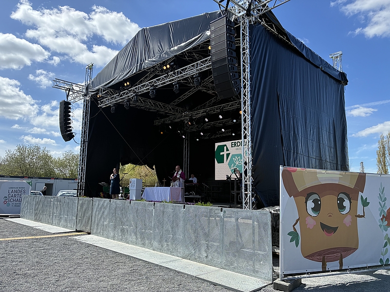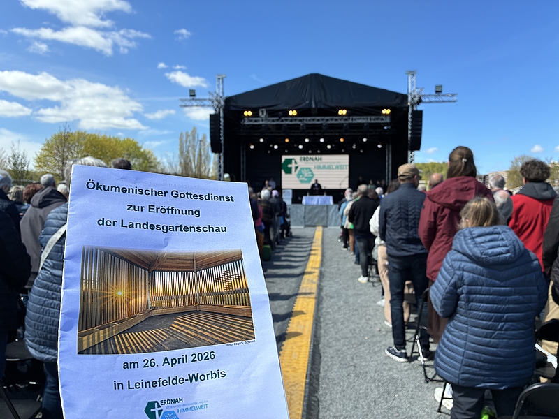 Die kirchliche Präsenz auf der Landesgartenschau in Leinefelde-Worbis ist eröffnet. Am Sonntag, 26. April 2026, feierten etwa 600 Besucher:innen unter dem Leitwort „erdnah – himmelweit“ einen ökumenischen Gottesdienst. Propst Marcellus Klaus und Superintendent Christian Beuchel gestalteten den Gottesdienst gemeinsam mit Bischof Ulrich Neymeyr und Landesbischof Friedrich Kramer sowie Ruben Werner (ACK), musikalisch begleitet von der Band „Heaven´s Gate“. Bereichert wurde der Gottesdienst dabei auch von einer Gebärdendolmetscherin, die Musik und Texte lebendig und eindrucksvoll übersetzte.