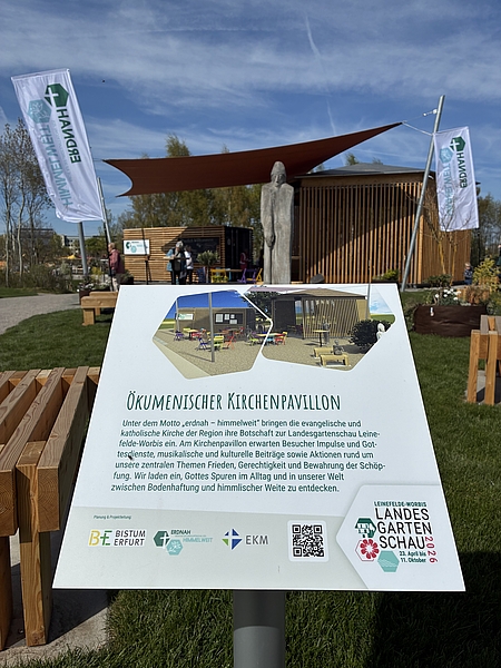 Das Leitmotiv „erdnah – himmelweit“ zieht sich durch alle Angebote. Die Blume im Logo steht für Wachstum und Pflege, das Kreuz für Tod und neues Leben. Täglich um 12 und 17 Uhr laden kleine geistliche Angebote zum Innehalten ein, dazwischen sorgen wechselnde Programme von Gemeinden für neue Impulse. So ist der Kirchenbereich ein lebendiger, fester Teil der Landesgartenschau – ein Ort zwischen Ruhe, Besinnung und Begegnung.