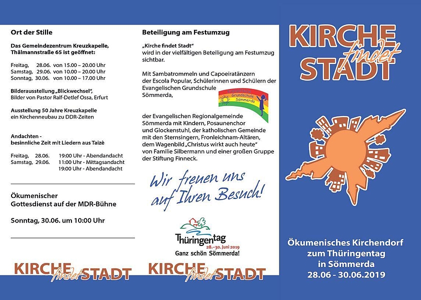 Zum Thüringentag, der in diesem Jahr vom 28. bis 30. Juni in Sömmerda stattfindet, laden die Kirchen mit einem tollen Programm ein