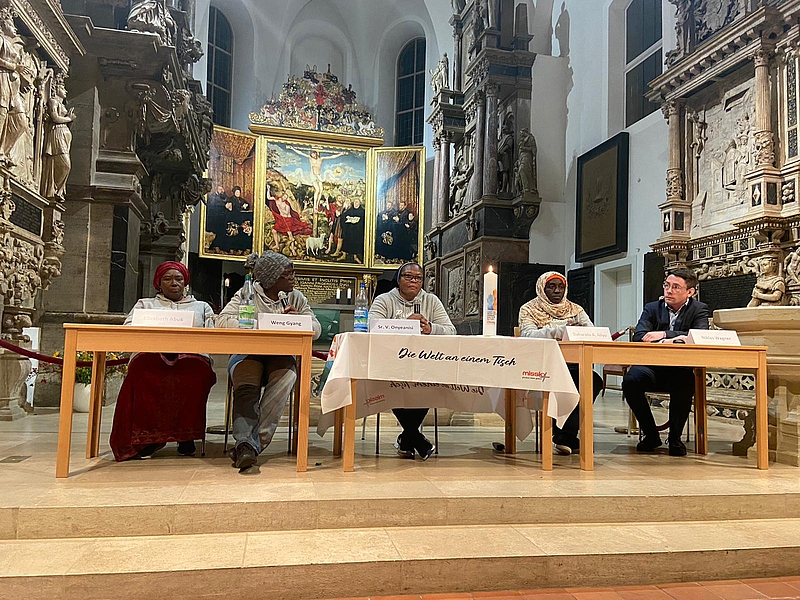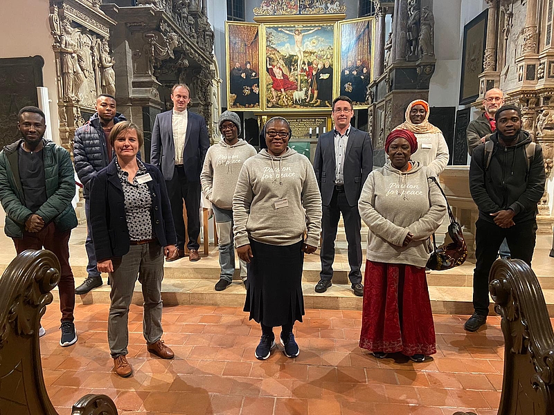 So auch in der Herderkirche zum interreligiösen Dialog mit Pfarrer Seliger und Imam Krim Seh Hiri, moderiert von Niklas Wagner, Katholisches Forum im Land Thüringen. Hier wiederholten die drei starken Frauen ihre Leidenschaft für den Frieden. Zu den Besucher:innen zählten missio-Spender:innen, evangelische und katholische Christen, Muslime und Angehörige der kleinen nigerianischen Gemeinde in Weimar.