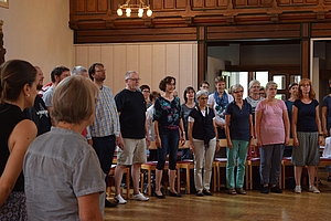 Die lockere Probenatmosphäre und das fröhliche Singen tun das ihre: Am Ende des Chortages steht das Chorprogramm. „Ich staune, wie schnell die Zeit vergangen ist und was wir alles geschafft haben“, wundert sich ein Chorsänger, der aus Südthüringen angereist ist. „Es war einfach wunderbar, beim nächsten Mal bin wieder mit dabei“, ergänzt ein Sänger aus Sondershausen.