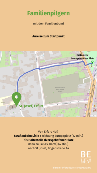 Begleiten Sie das Bonifatiuswerk und Gäste aus den Bistümern Würzburg und Bamberg. Der Pilgerweg führt auf ruhigen Weg entlang der Gera und der Altstadt zum Domplatz.