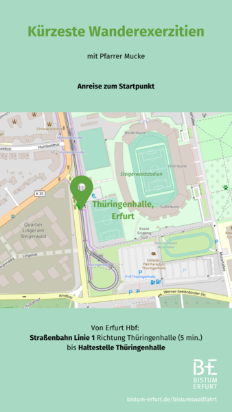 Wandern Sie aus dem Erfurter Süden zum Domplatz. Gestaltet wird der Pilgerweg wie die Wanderexerzitien, die Pfarrer Mucke regelmäßig anbietet.
