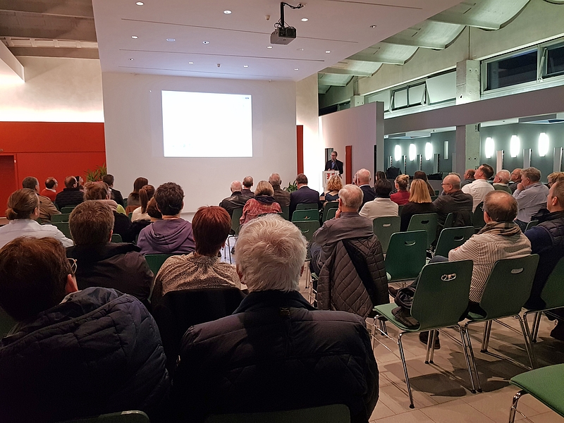 Die Zuhörer in der Obereichsfeldhalle zeigten sich besonders an der Nachhaltigkeit und dem Energiekonzept des Schulzentrums interessiert. Architekt Hengst führte dazu aus, dass das Schulgebäude aus Holzhybridteilen erbaut werde und über eine begrünbare Holzfassade verfügen wird. Das sei nicht nur dem Auge angenehm. „Die grüne Fassade hilft, auf natürliche Weise das Gebäude zu verschatten und somit die Temperaturen im Inneren niedrig zu halten“, sagte Hengst. Das Schulzentrum verfüge über einen energiesparenden Dämmstandard und werde mit Erdwärme beheizt. Zudem befinde sich auf dem Dach der Schule eine Lüftungsanlage mit Wärmerückgewinnung. Den notwendigen Strom dazu liefert eine Photovoltaikanlage. „Heizung, Kühlung und Belüftung der Schule finden klimaneutral und ohne CO2-Ausstoß statt“, so Hengst. Grüner geht es kaum. Das gilt auch für das Schulgelände, auf dem sich viele Grünflächen und Bäume finden werden, wie der Architekt ausführte.