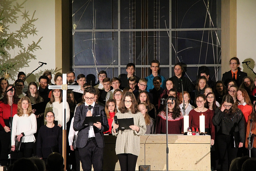 „Dein Friede wirke Frieden“, singen die Jugendlichen vor, und alle, wirklich alle stimmen ein und singen mit: Im traditionelle Abschlusskonzert der Weihnachtssingewoche am Sonntag, 30.12.2018 steckten die jungen Sängerinnen und Sänger das Publikum mit ihrer Begeisterung an: Vom klassischen „Enatus es Emanuel“ von Michael Praetorius über afrikanische Klänge bis zum jazzigen „Jubilate Deo“ von Jay Althouse – weihnachtliche Freude und festlich-fröhliche Klänge ließen alle Herzen höher schlagen.