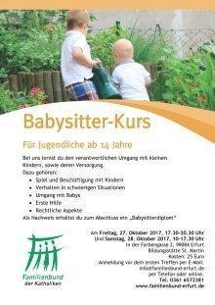 Erfurt. Der Katholische Familienbund veranstaltet schon seit einigen Jahren Babysitter-Kurse für Jugendliche ab 14 Jahren. Im Oktober 1027 ist es nun wieder so weit.