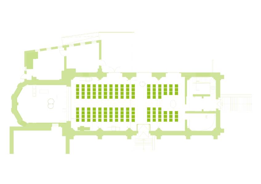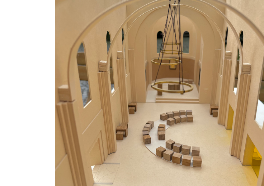 Stärker als ursprünglich geplant soll neben dem sakramentalen Chor auch das Kirchenschiff als offener Begegnungsraum genutzt werden. Ganz im Sinne des heiligen Franziskus öffnet sich die Kirche damit hin zum Klostergarten. Diese soziale und räumliche Neuinterpretation fördert neue Formen der Begegnung und stärkt die Kommunikation zwischen Kirche, Gemeinde und Öffentlichkeit.