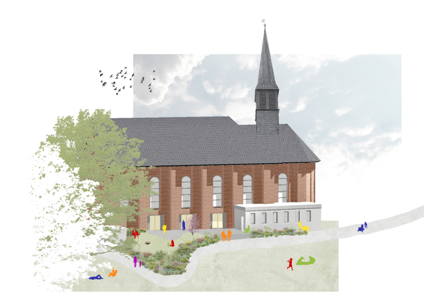 Durch die Verbindung von Innen- und Außenraum entsteht ein Mehrwert für die pastorale Arbeit über die Gemeinde hinaus. Die landschaftsarchitektonische Gestaltung schafft eine zeitgemäße Verbindung von Kirche und Klostergarten. Damit stellt sich die Kirche am Kerbschen Berg zukunftsorientiert auf: Strukturelle und funktionale Gegebenheiten des gesamten Areals werden neu gedacht – ausgehend vom Kirchenraum als Herzstück.